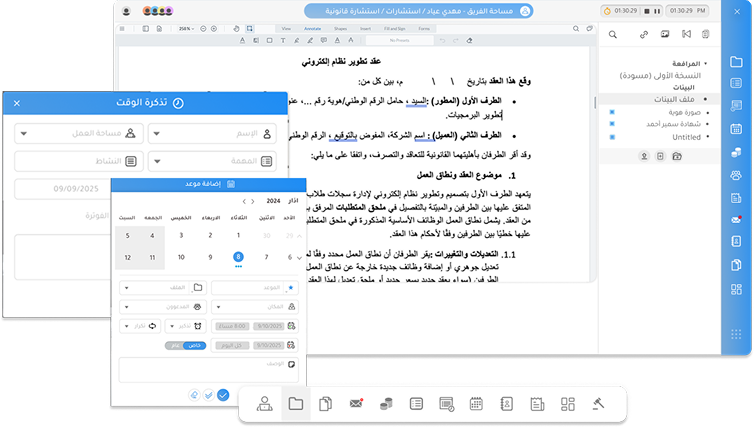 مكتب منصة ذكية وشاملة توحِّد بين إدارة مكتبك القانون وممارسة عملك اليومي، لتمنحك تجربة متكاملة وسلسة دون أي تشتت.